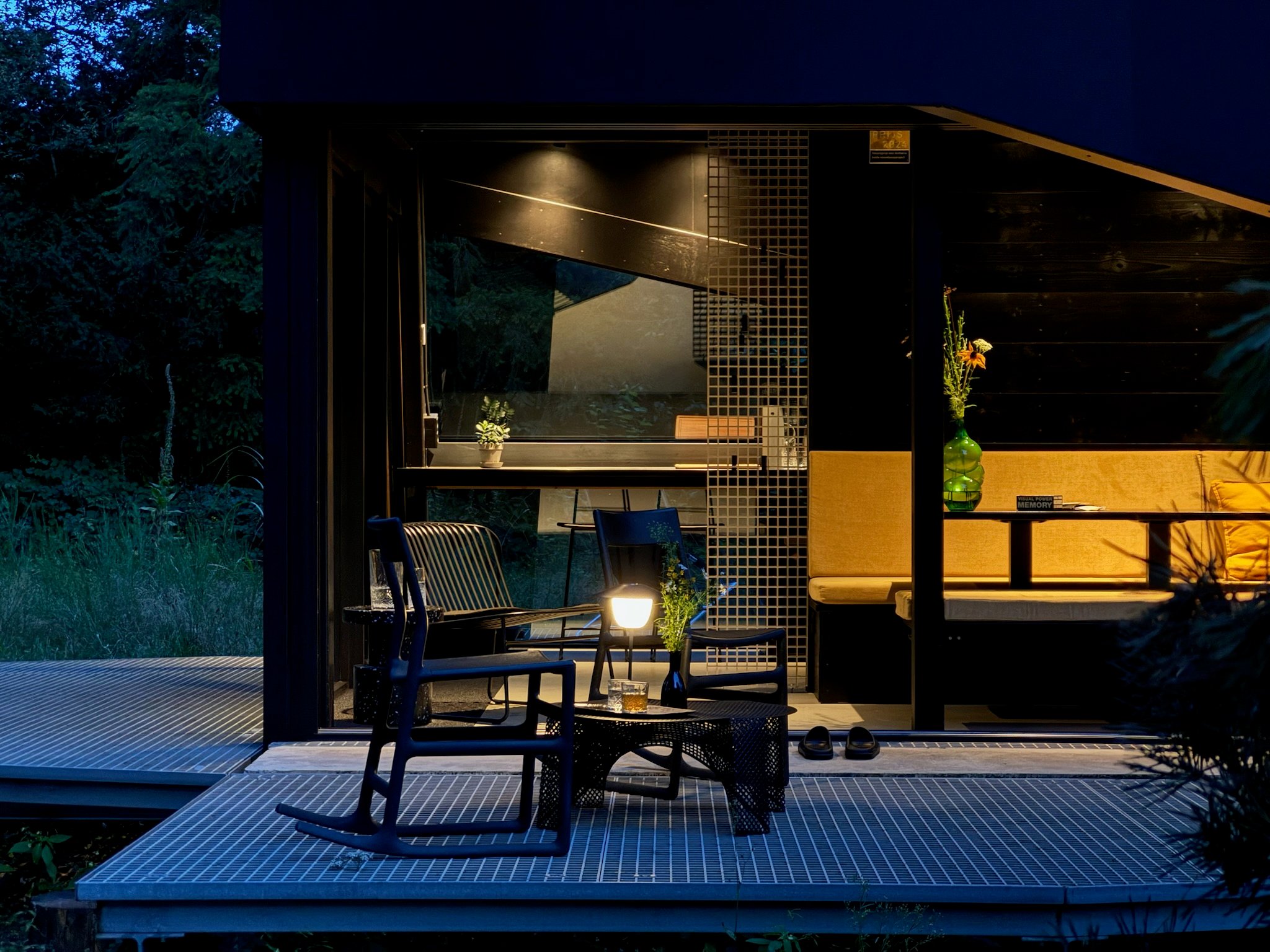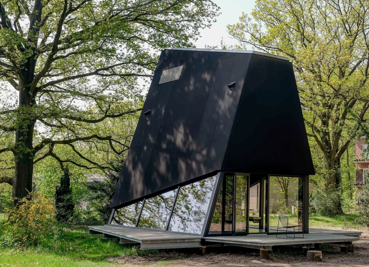 Dit verblijf, winnaar van de Heuvelink Architectuurprijs 2024, ligt op steenworp afstand van ingang Schaarsbergen van Park de Hoge Veluwe.