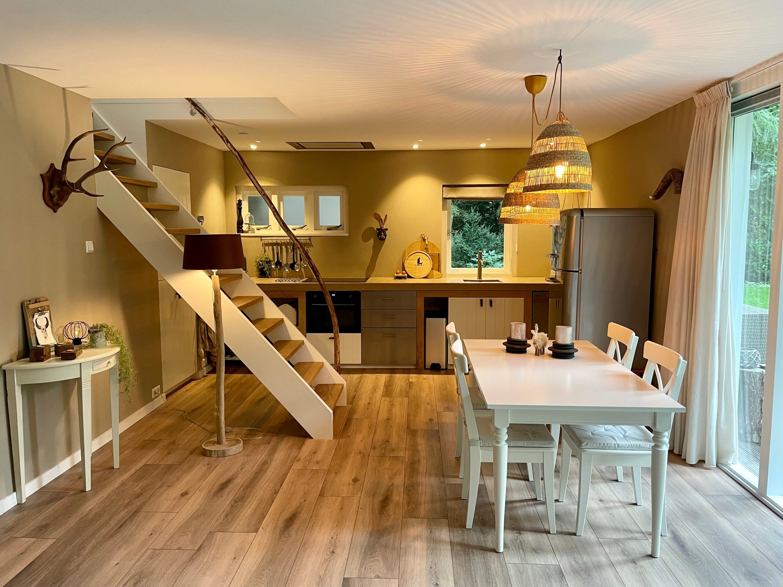 Wil je ontsnappen aan de dagelijkse hectiek en ontspannen in de schitterende natuur van de Veluwe? Dat kan perfect bij ons boshuis. Dit geheel gerenoveerde natuurhuisje heeft een ruime woon- en eetkamer met open keuken. Vanuit de woonkamer ga je via openslaande deuren naar de veranda en tuin (eekhoorntjes en vogels spotten!). De tuin met buitenkeuken biedt uitzicht op veel groen, landerijen en het bospark.