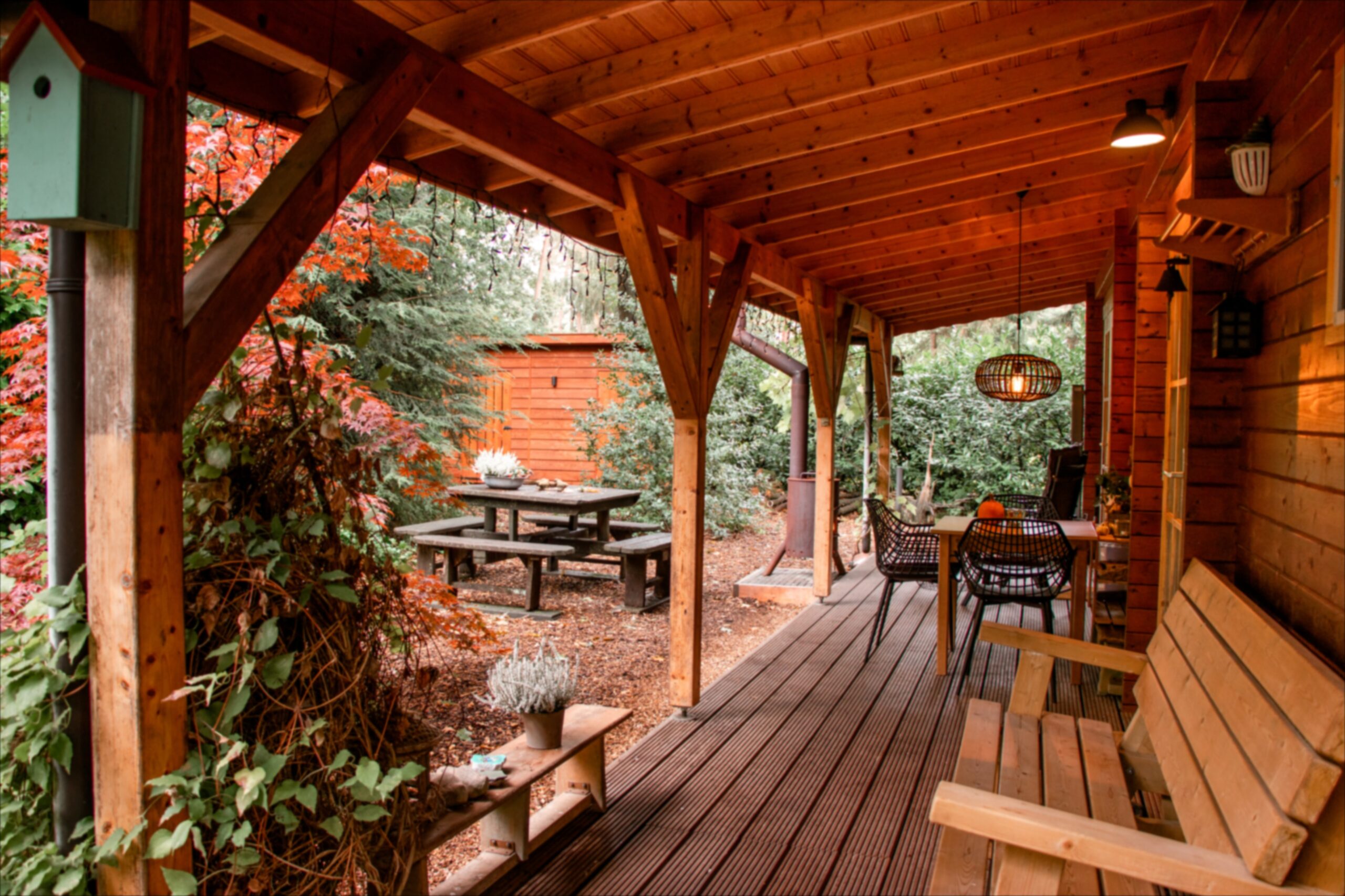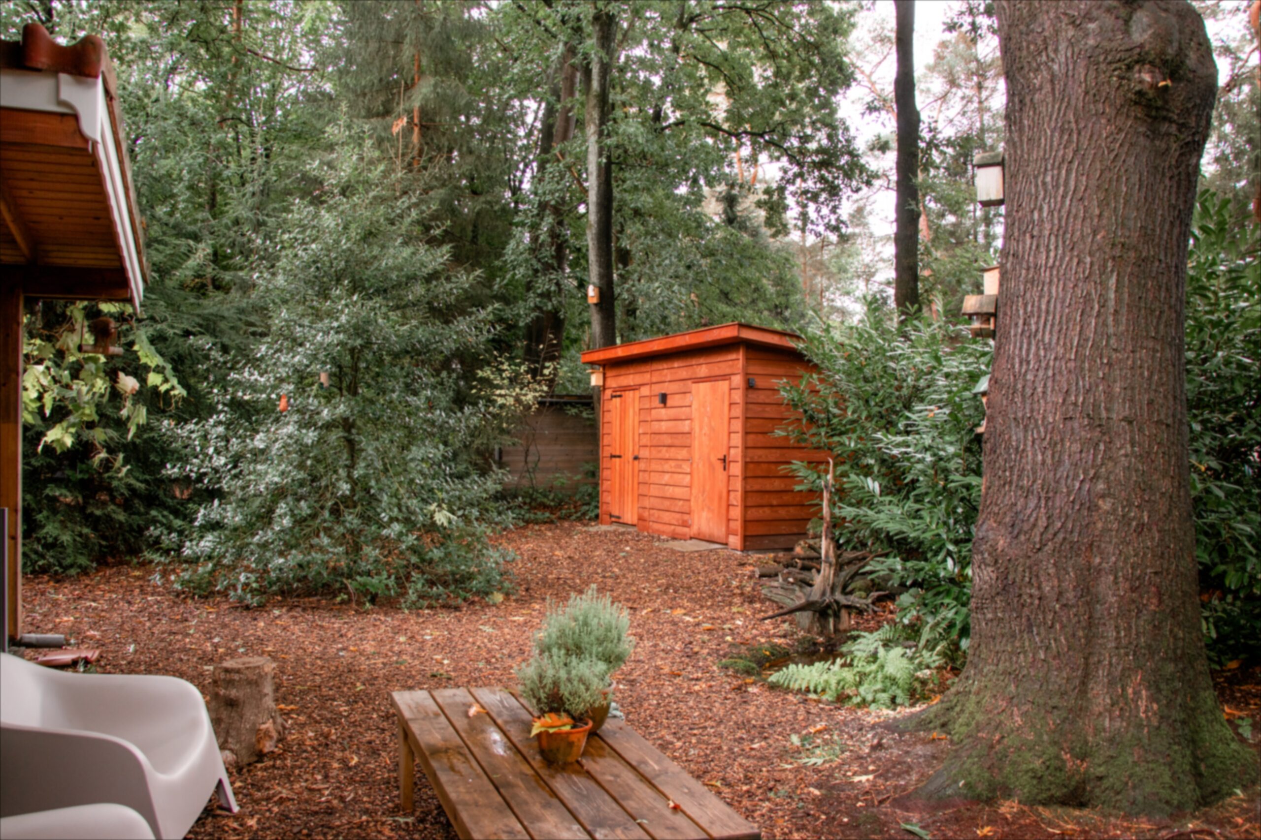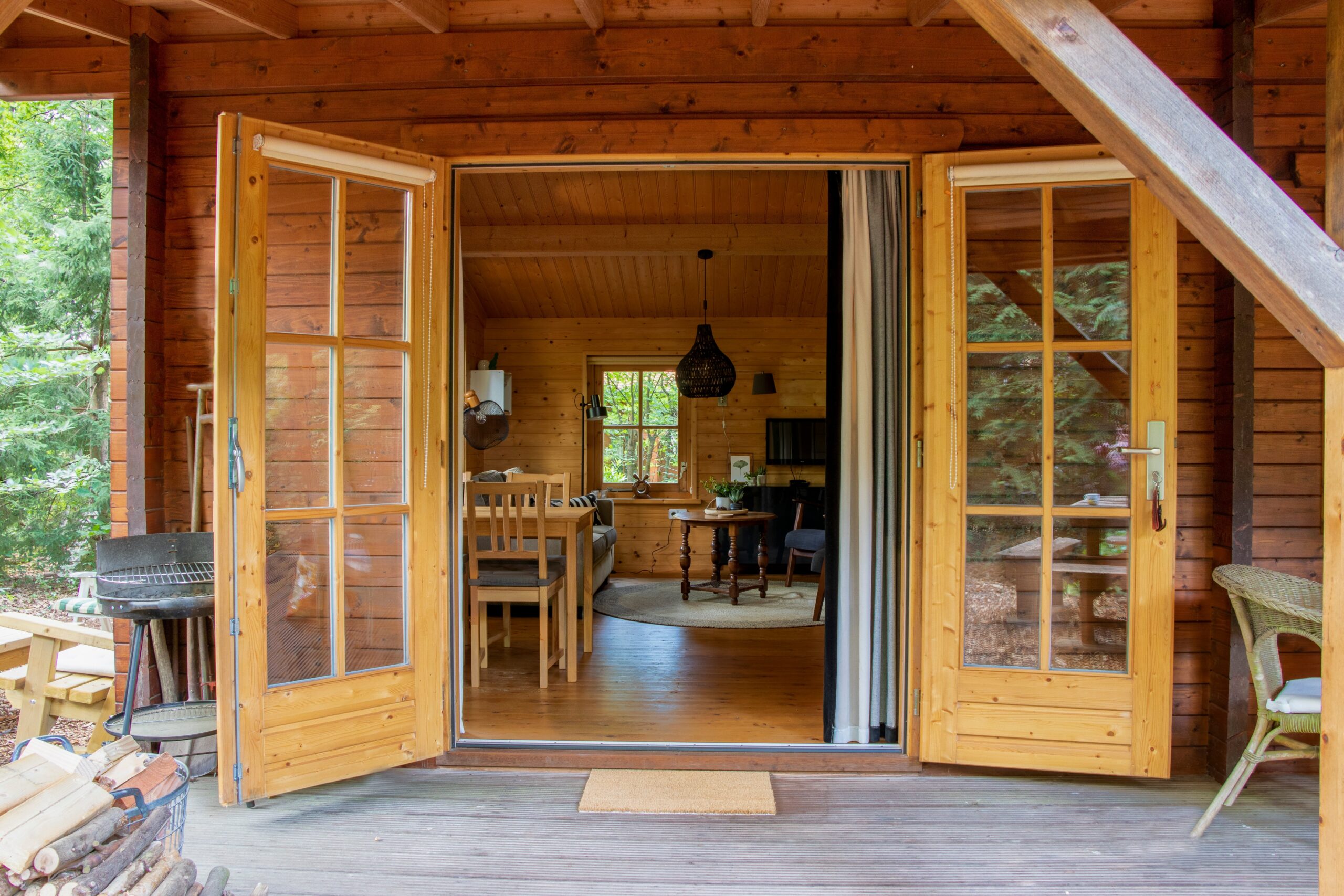 Het natuurhuisje is gelegen in de bossen van het Gelderse Emst. Het bevindt zich op een bosperceel van maar liefst 730 m2 eigen grond. Het betreft een rustig natuurpark zonder recreatieve voorzieningen. De natuurbeleving staat voorop en de omgeving biedt veel mogelijkheden om deze optimaal te ervaren. Wanneer je de locatie van het natuurhuisje van bovenaf bekijkt is duidelijk te zien dat deze op de grens ligt van de Veluwe en het oer-Hollandse “boeren”landschap.Het volledig van hout gemaakte natuurhuisje is voorzien van een ruime twee persoons slaapkamer en een extra slaapkamer met stapelbed. De slaapkamers bevinden zich op de begane grond.Er is een ruime badkamer met douche en separate toilet. De keuken is voorzien van een inductie kookplaat, combimagnetron , waterkoker, koffiezetapparaat en koelkast met vriesvak. Er is een wifi verbinding voor TV en Internet . De woning is recentelijk voorzien van centrale verwarming en heeft daarnaast een speciale tegelkachel die hout gestookt is.