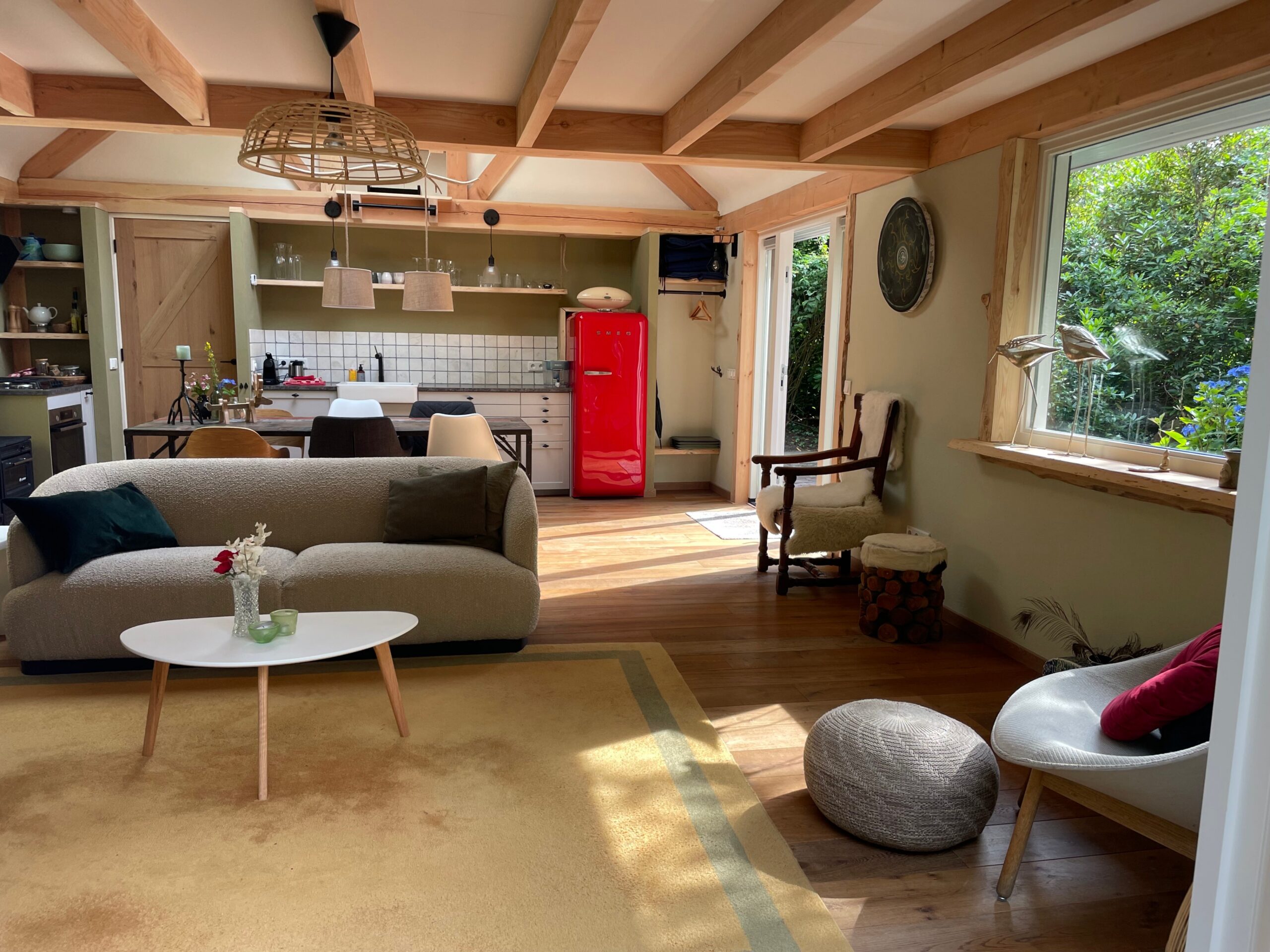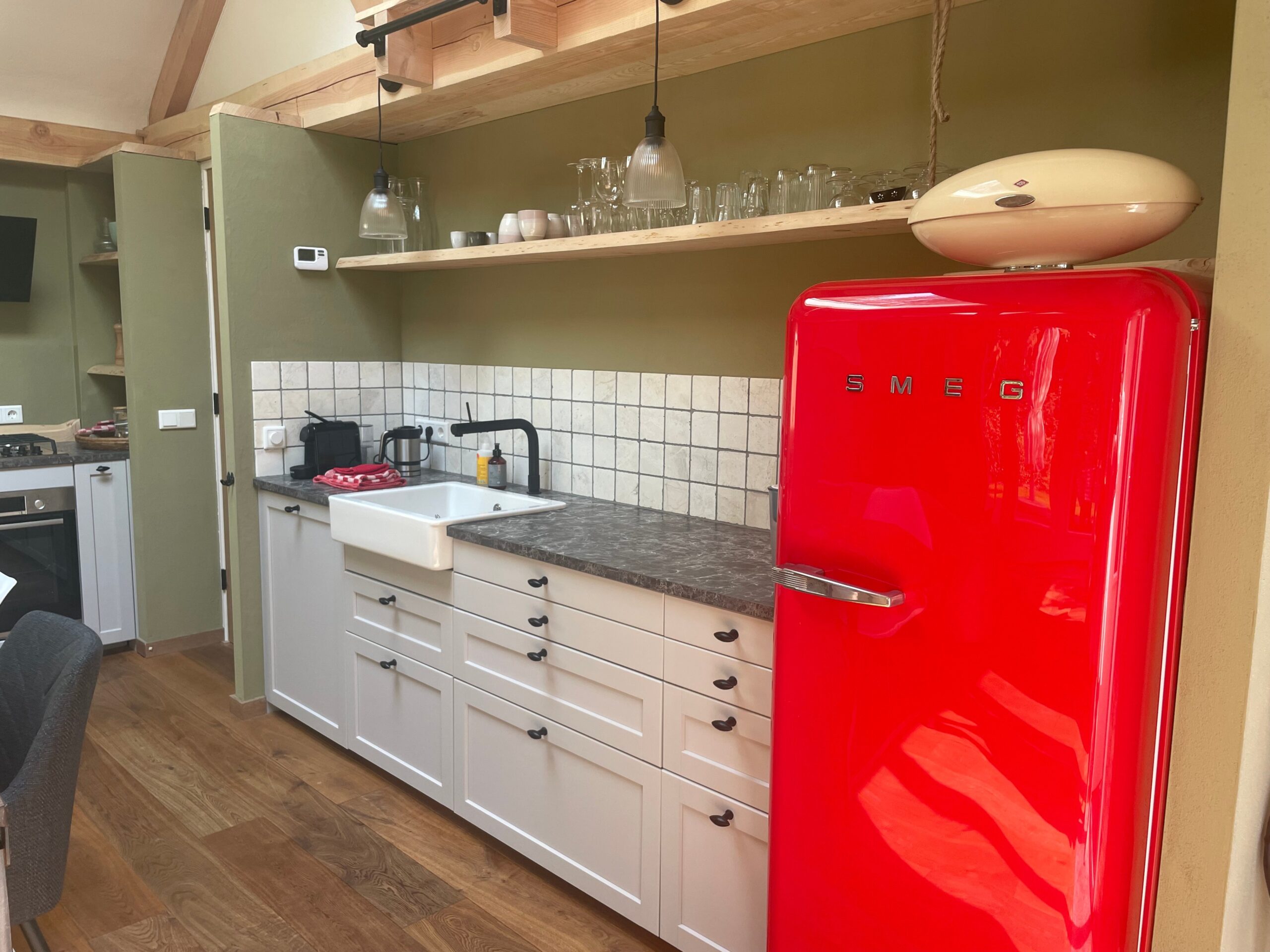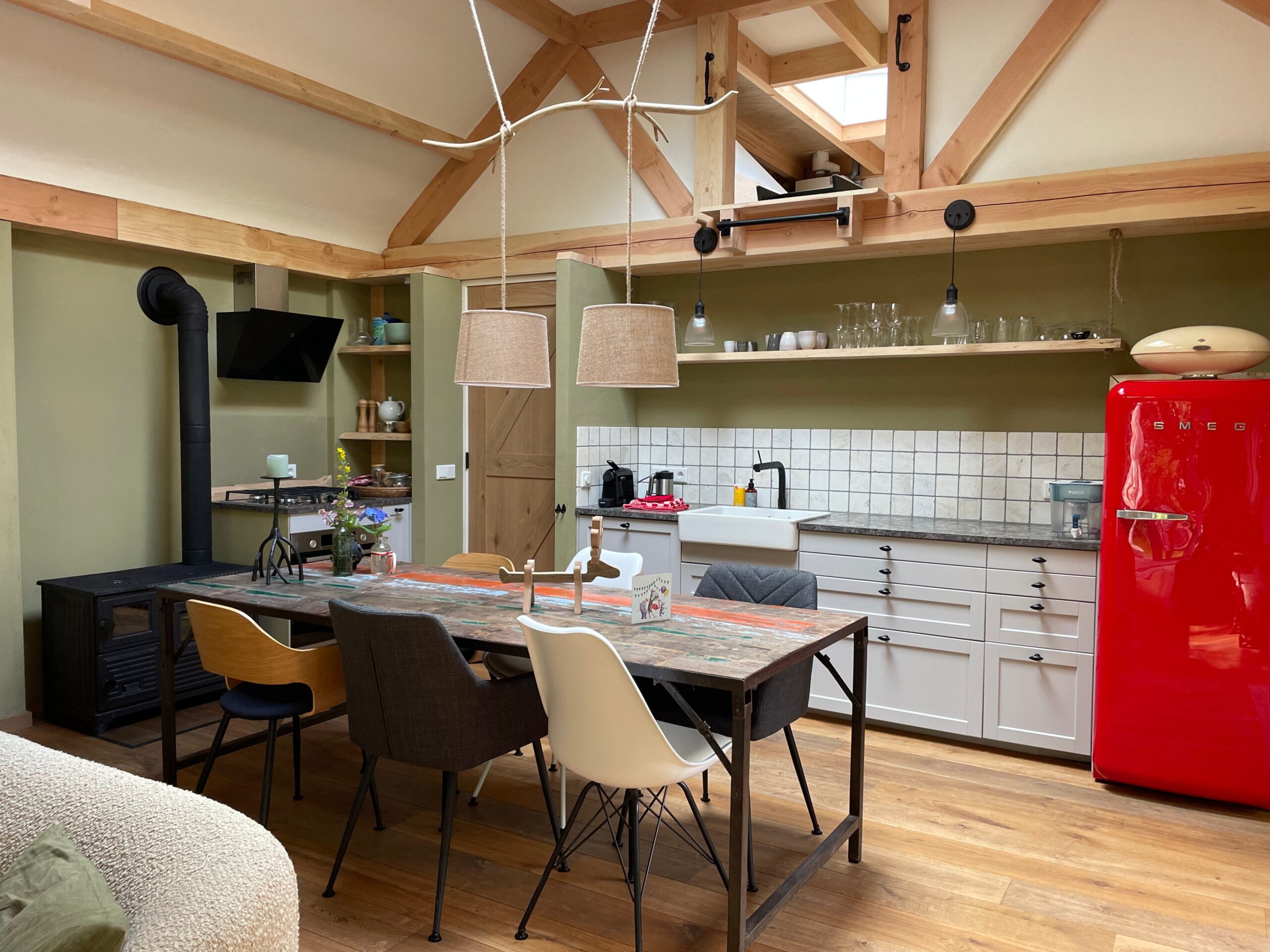 Met ruime zithoek en uitgebreide keuken, oa met quooker, houtkachel/fornuis (incl hout), oven, 4 pits gasstel, afwasmc, ruime eettafel, nespresso, melkschuimer, watercontainer etc.