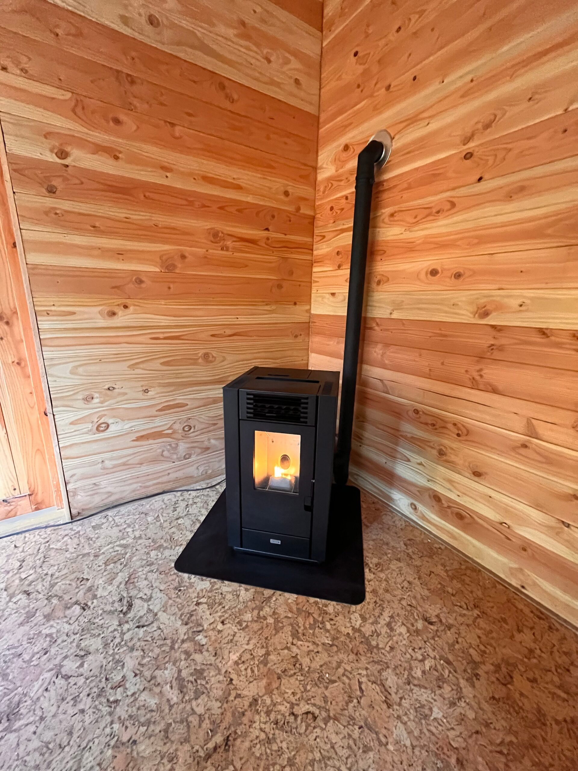 Het huisje zelf meet 32m2 en is voorzien van een kleine keuken met volledige inrichting, een slaapkamer met een badkamer voorzien van regendouche met seperate handdouche, wastafel en toilet. In het woongedeelte staan 2 heerlijke Aviator stoelen op jullie te wachten bij een gezellige pelletkachel voor de koude dagen.