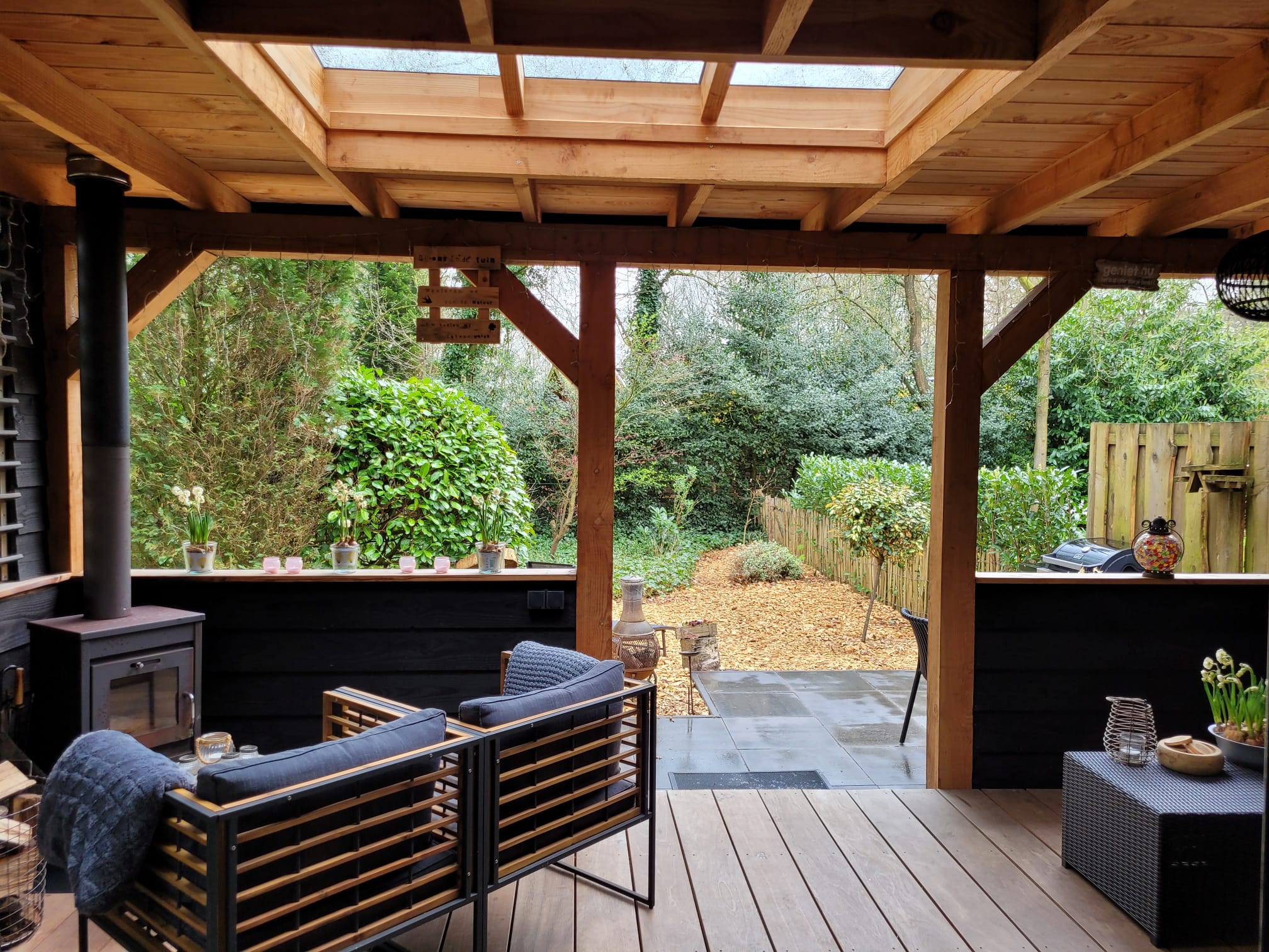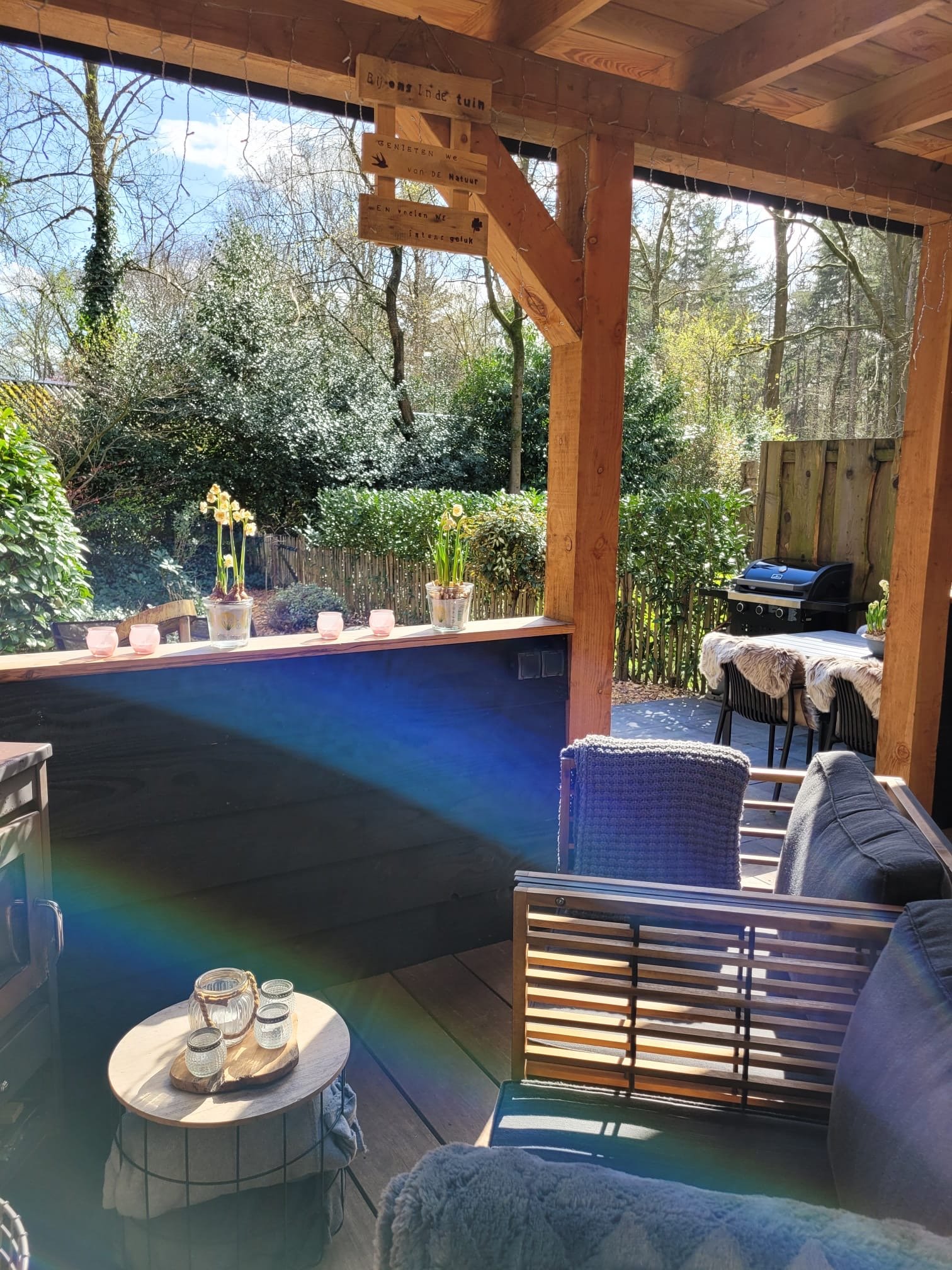 GENIETEN van het bos- en buitenleven kunt u in dit unieke natuurhuisje met veranda en openhaard (incl. hout). U ervaart het echte bosgevoel de rust en de ruimte. Bij aankomst staan de bedden opgemaakt voor u klaar (badlinnen optioneel bij te boeken). Het huisje heeft een eigen oprit, carport & entree voor- en achter voor een contactloos verblijf. In dit sfeervolle huis is ruimte voor 2-4 personen. Er is een gezellige woonkamer met tijdschriften, spelletjes, tv, mooie woonkeuken, badkamer met regendouche, apart toilet en twee grote slaapkamers met heerlijke boxspring bedden. Buiten is er veel ruimte en de bostuin is omheind. U kunt het hele jaar door genieten op de veranda met haard, fauteuils en lounge bank. De BBQ, ligbedden en mooie eettafel mogen niet ontbreken. Dit natuurhuisje ligt in een rustige bosrijke omgeving met toegang tot privé bos waar u zo in kunt wandelen. Dit is een luxe en uniek natuurhuisje waar u echt tot rust komt! Kom langs, ontdek en “Geniet mee van onze Veluwe”
