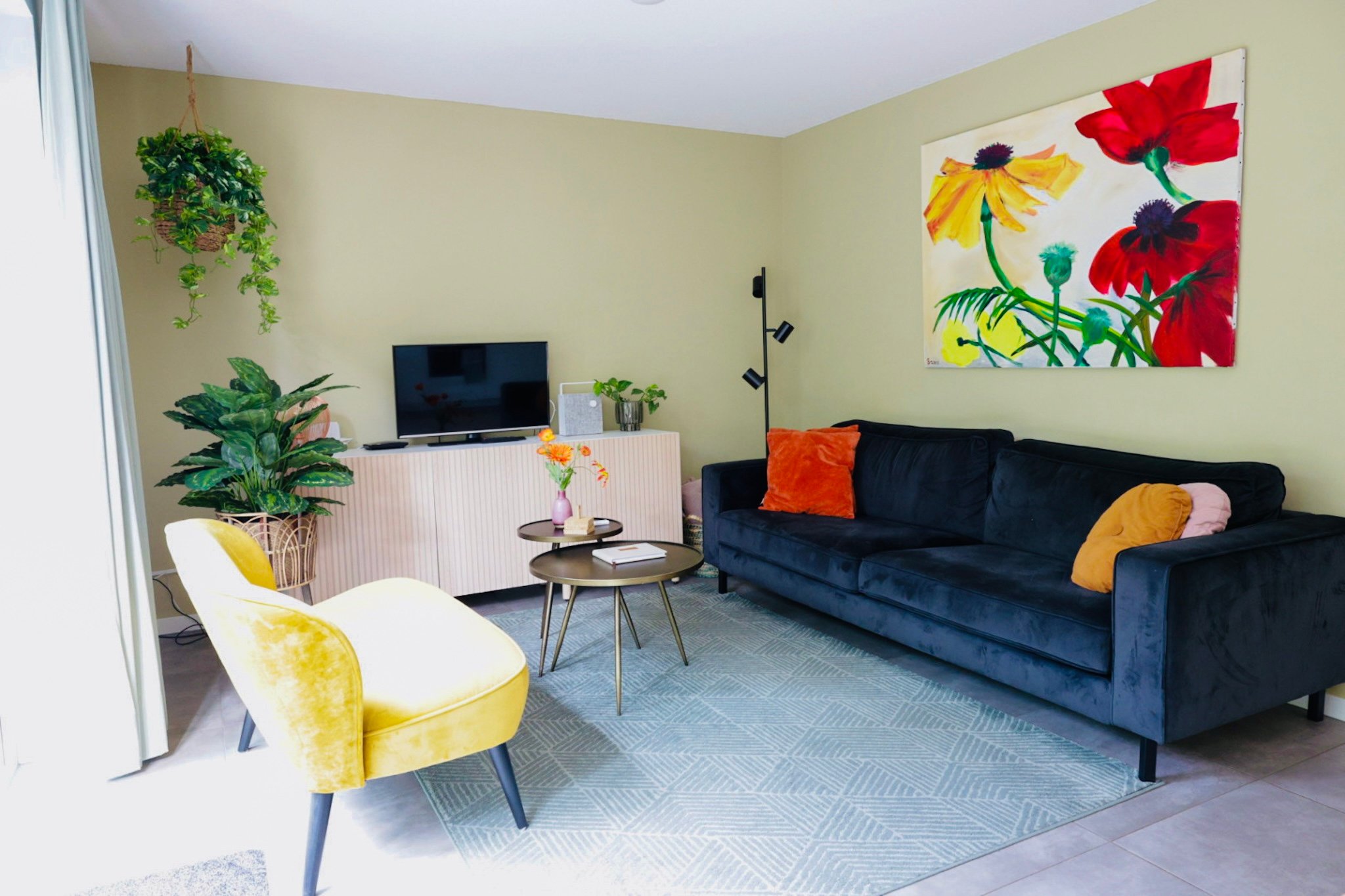 Het huis heeft een gezellige, lichte en ruime woonkamer met een…