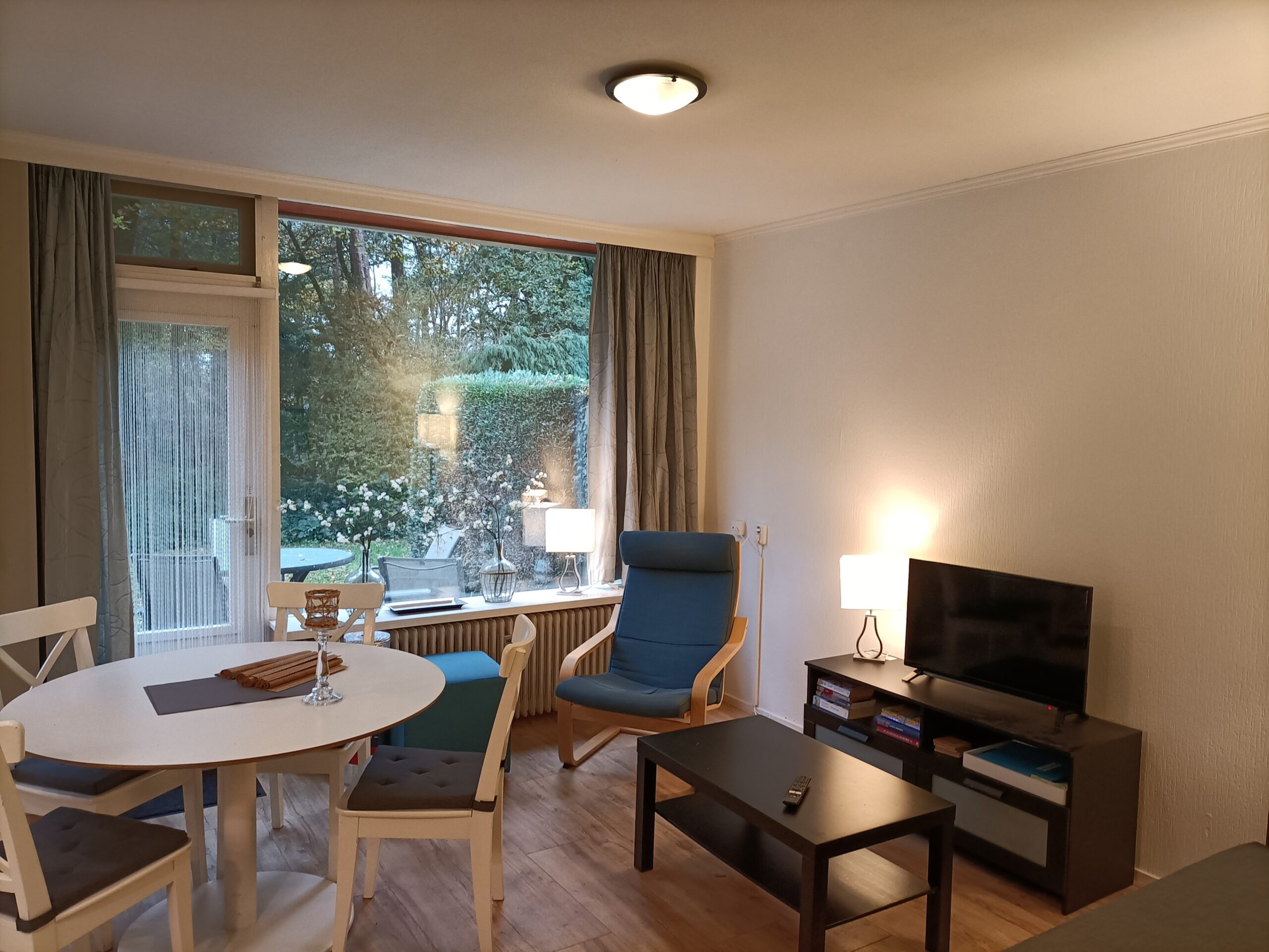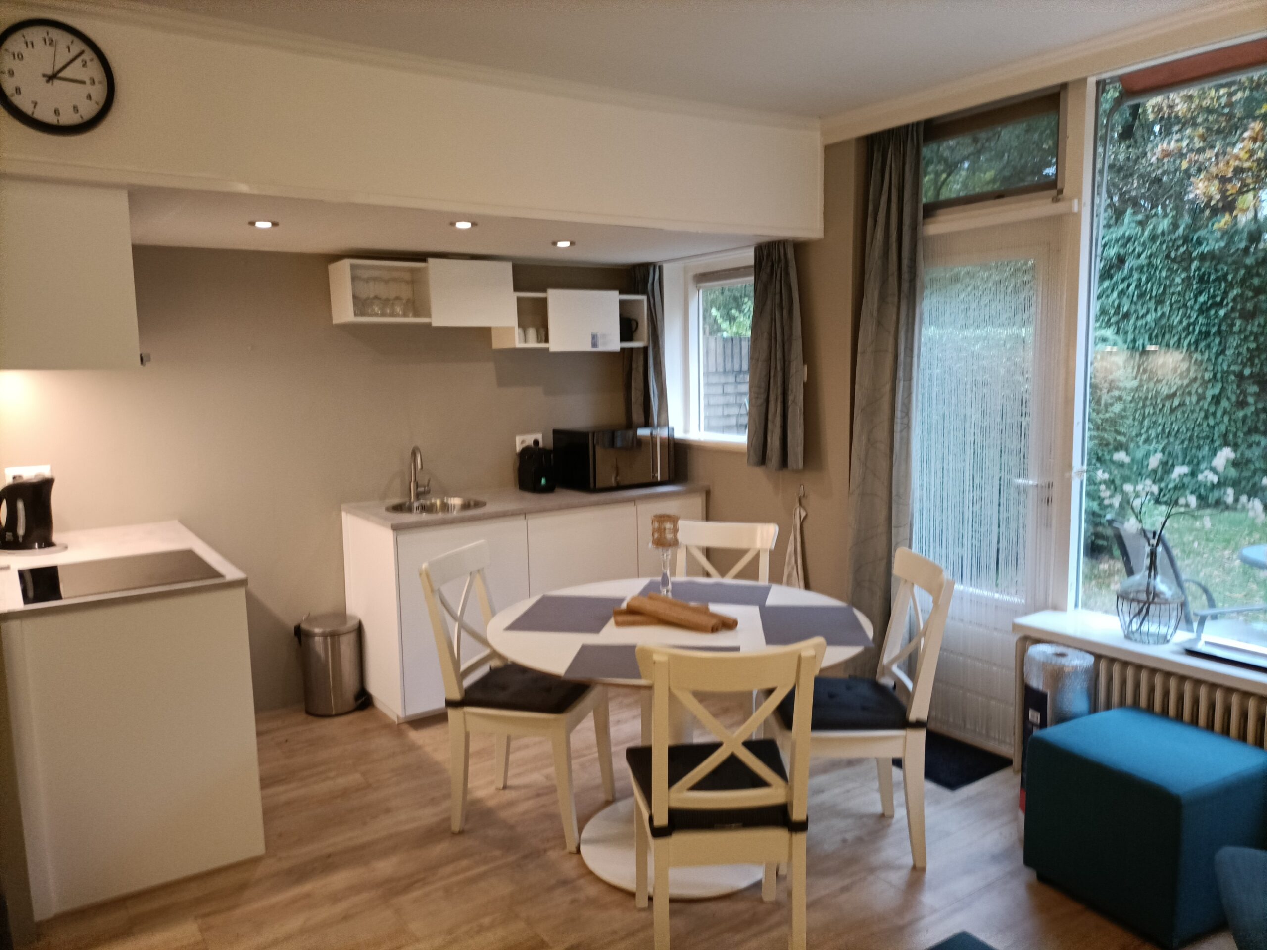 Aan de rand van het dorpje Otterlo en op loopafstand van het Nationale Park De Hoge Veluwe, het Kröller-Müller en openbaar vervoer, ligt ons natuurhuisje, gelegen in een prachtig Natuurpark. Zo zijn handdoeken, bedlinnen, gas, water, licht, Google Chromecast en een goede WIFI aansluiting bij de prijs inbegrepen. De keuken heeft o.a. een vaatwasser, gasstel, combimagnetron, koelkast, vriezer, koffieapparaat (Nespresso), waterkoker enz. Tevens is er een wasmachine aanwezig in de bungalow. Het natuurhuisje is een geschakelde vakantiewoning met voldoende privacy. De slaapkamers liggen in elkaars verlengde waardoor de (ouder)slaapkamer (voorzien van een boxspring) alleen te bereiken is via de extra slaapkamer Voorzien van twee losstaande bedden. (zie plattegrond). Alle bedden zijn voorzien van lakens en voldoende dekens. Verder is er voor de jongste gast een campingbedje en een kinderstoel.