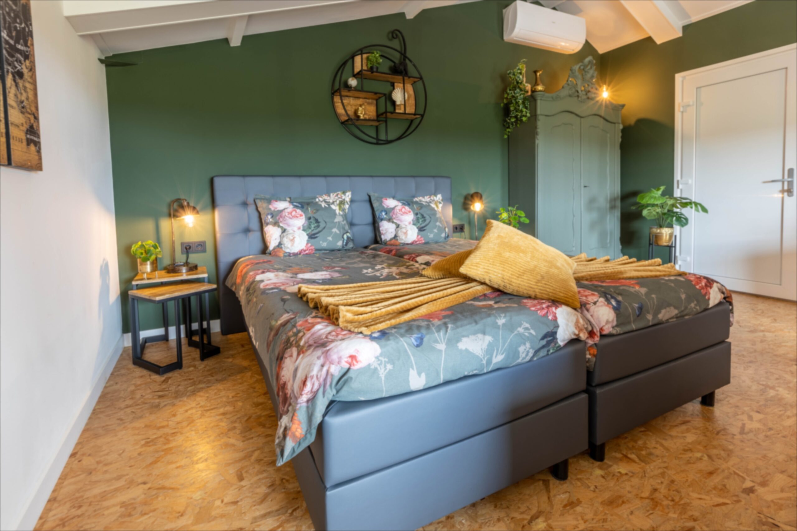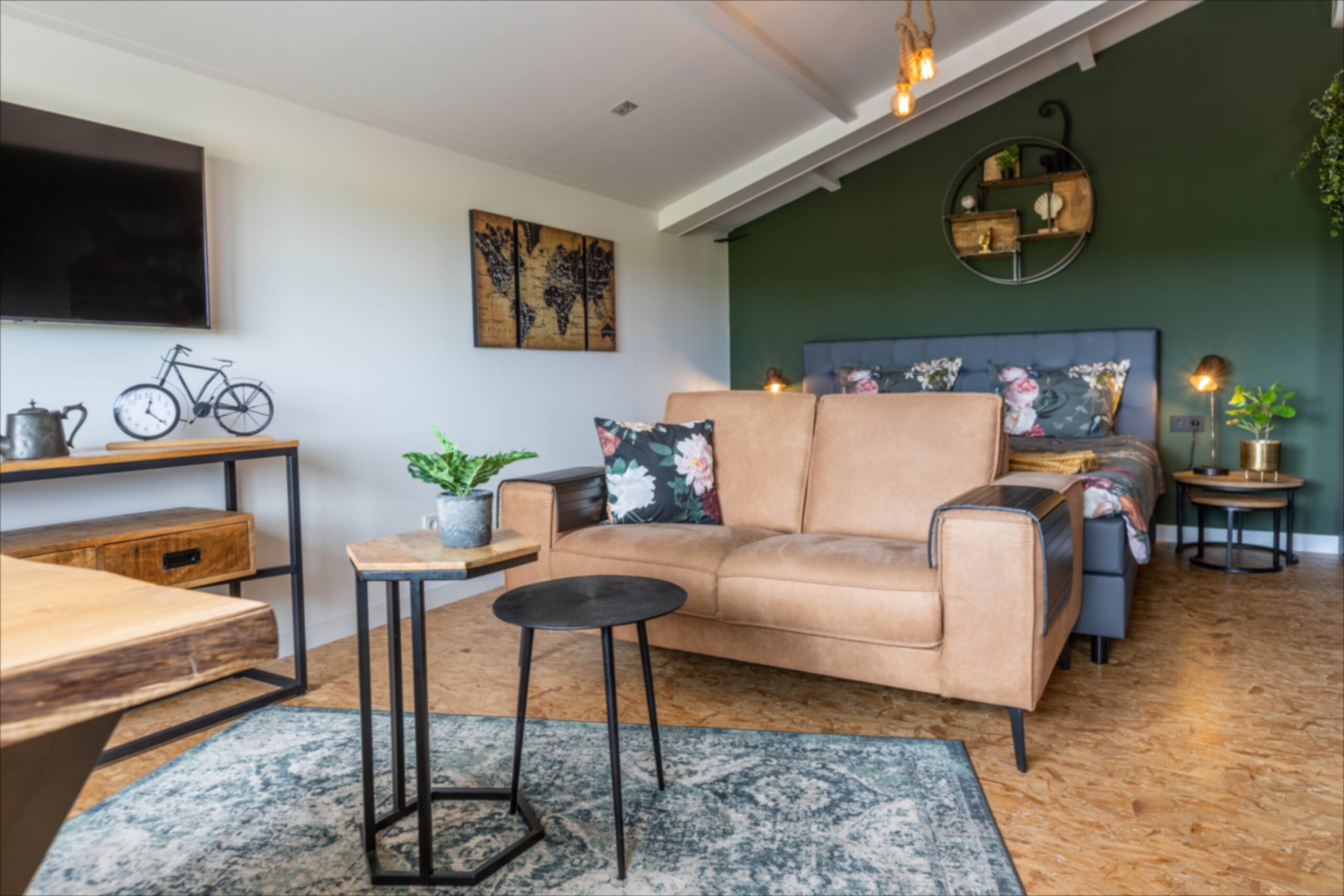 Dit Natuurhuisje is gelegen op het Noorden van de Veluwe met zijn uitgestrekte landerijen en vergezichten in het dorpje Wezep/Oldebroek en is geschikt tot 2 personen + 1 kind (Een klein schoothondje is toegestaan, met een maximale hoogte van 30 cm.) De studio is voorzien van een ruim 2 persoonsbed van 180×220 cm, een gezellige zit- & eethoek, en de gehele accommodatie is voorzien van airco en zonnepanelen. De keuken is voorzien van een vaatwasser, inductiekookplaat 2-pits, koelkast met vriesvak, senseo, broodrooster en de inrichting is helemaal van deze tijd en aangekleed met gezellige plantjes en decoratie. De badkamer met dubbele wastafel, inloopdouche en vloerverwarming sluit ook volledig aan bij de eigentijdse inrichting van de studio. Kom en boek een gezellig verblijf! U verblijft boven de paardenstallen waar u (ondanks de goede isolatie eigenschappen) wat geluiden van kunt horen.